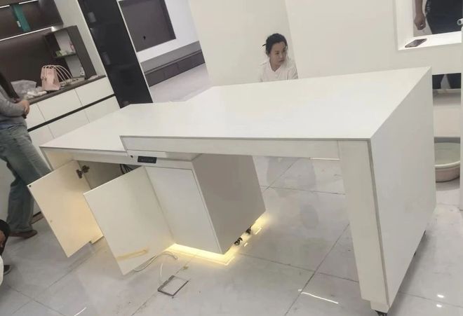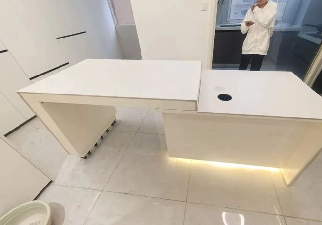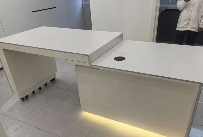 其实,这种固定式高度的操作台,对于很多人来说可能都不合适。看看现在流行的中央岛台电动升降式,这才是更符合我们大多数人的。