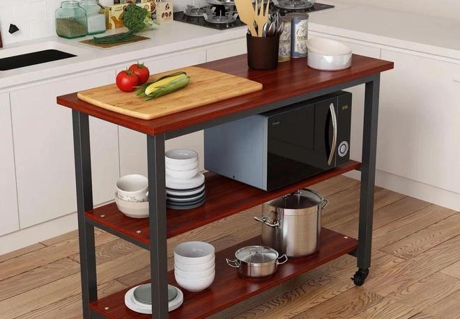我发现这个小餐台简直是厨房的神助手。洗菜的时候,推到水槽旁;切菜时,拉到光线好的地方;炒菜时,移动到灶台边。整个厨房的操作更顺手,也更省时间了。